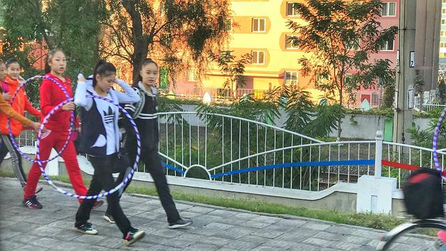 下午:午饭后(俄式午餐,味道不咋地,但管饱),回平壤参观主体思想塔、金日成广场、中朝友谊塔,欣赏少年宫表演。