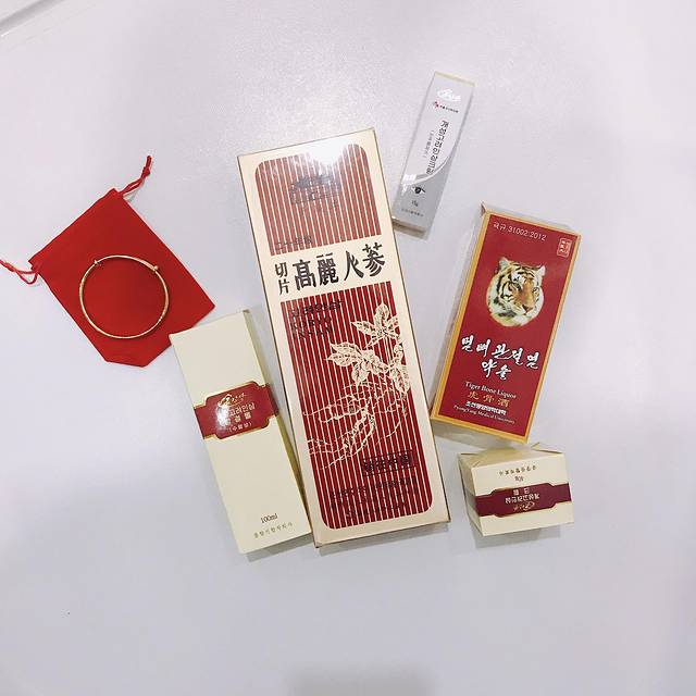 图片的人参眼霜我在丹东买58一支,朝鲜58人民币4支。切片人参也是丹东买的,至今仍在泡水喝。镯子是丹东买的钛金镯,10元1克,送长辈挺合适的。原来东北的大金链子小金表并不都是纯金啊!
