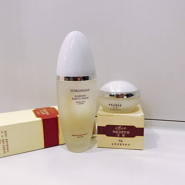 我自己之前在丹东旅游的时候买了人参水、人参晚霜、人参眼霜、虎骨酒以及切片人参。当时花了1K多。后来我发现我买的168的人参水,朝鲜竟然卖27块人民币,我差点没气吐血。第一张图的金刚山水乳我回国后一直在用,相当的滋润,超级无敌好吸收。甩韩国Whoo好几条街,这套人名币300,虽然朝鲜人买只要3人民币,好吧,我忍了。毕竟人民币对朝币是1:1300,不对外流通自有道理。