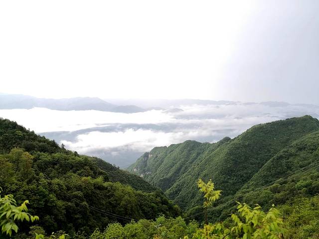 雨过天晴的草坝云海胜景甚美。云蒸霞蔚,高低沉浮,瞬息万变,曙日初照,浮光跃金,远近山峦和大巴山峰石,宛若大海中的无数岛屿,时隐时现于“狂澜”之上,一片烟水迷离之景,是诗情,是画意,是含而不露的美,置身云端,神思飞越,宛若仙人。