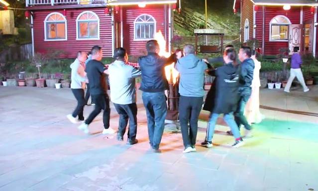 饭后篝火晚会在海拔1800多米的草坝生态农场举行,山里虽然寒气逼人,但熊熊燃烧的火焰温暖着每个人的心,大家载歌载舞,快乐的笑声回荡在夜空。