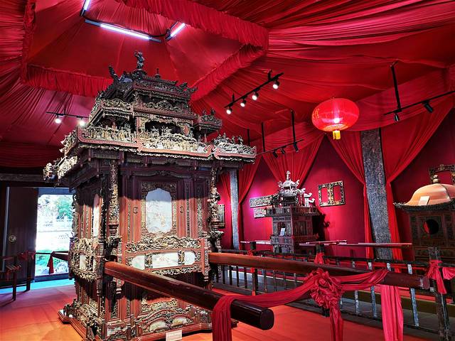 红妆馆的“镇馆之宝”要属有着600多年历史的“天下第一轿”,其华丽程度就像是一辆没有发动机的豪华房车。整个轿子重达一吨,是一个需16个人抬的龙凤大轿,古今罕见。