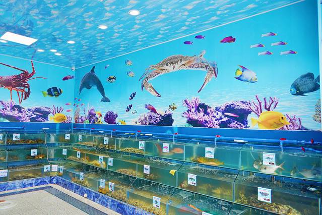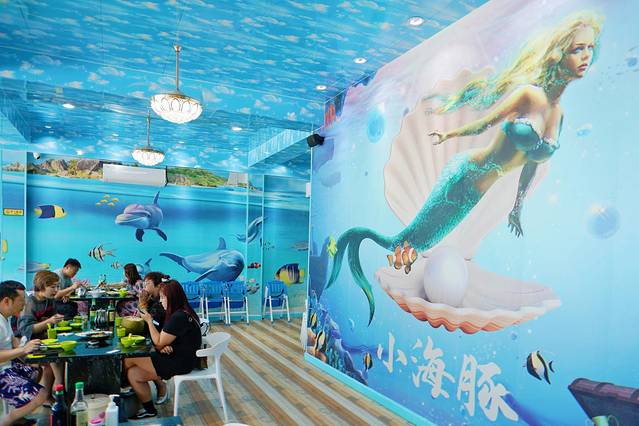 天蓝色的外墙第一眼就给人清新舒心的感觉,店里也是同色系,就像深处海底世界里,享受一顿美味大餐
