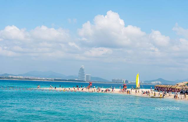 蜈支洲岛,在三亚北部的海棠湾内,离市区大概有30公里,从三亚湾出发前往是相对比较近的。因为这里有蔚蓝的天空、湛蓝的海水与洁白的沙滩,被誉为“中国的马尔代夫”,同时也是世界上为数不多的没有礁石或者鹅卵石混杂的海岛,岛四周海域清澈透明,海水能见度6~27米,形态各异的珊瑚与马鲛鱼、石斑鱼、海胆、海参、对虾、夜光螺及五颜六色的热带鱼一起构成了神奇的海底世界,如果想要浮潜,这里会是不错的选择。