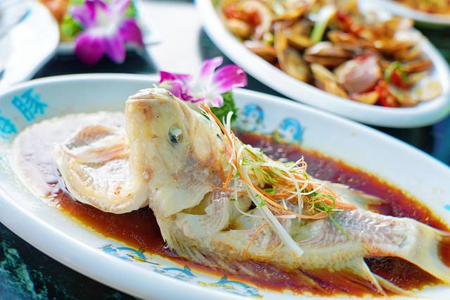 鱼也是不能错过的哟,看看这个鱼的颜色是不是很鲜艳,鱼肉很嫩,没有小刺,新鲜先蒸,完好的保留了鱼的鲜味,入口即化。