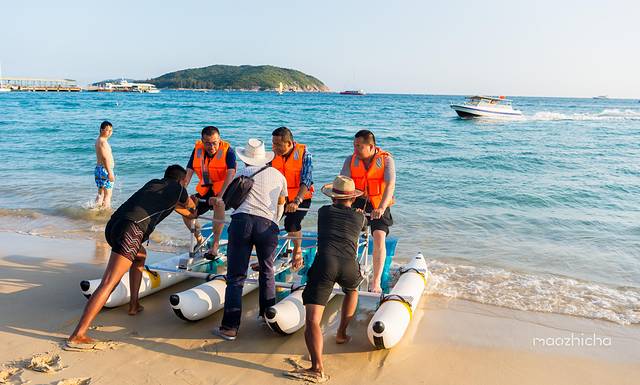 蜈支洲岛是一座私人岛屿,真是太豪了,它距离海岸线2.7公里,到达码头后需坐船前往,门票和船票是包含在一起的,船很快就靠岸了,一登上岛就看到了阳光下耀眼的白色沙滩,实在太美啦。