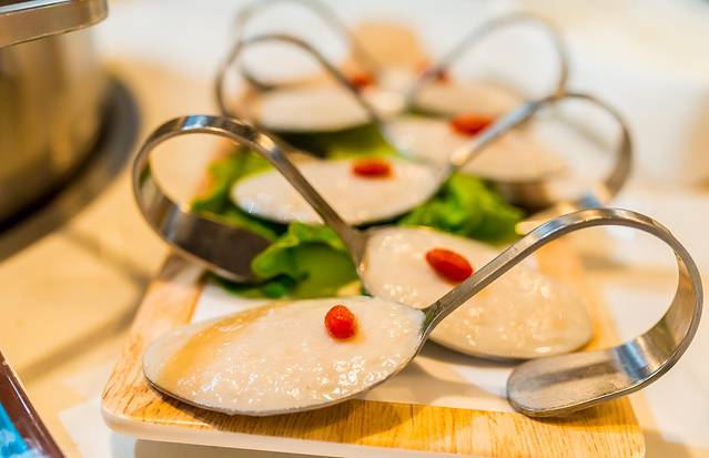 马鲛鱼:细致的鱼肉被打成泥,在清香的椰汁汤底煮熟后,口感非常好,非常细腻。