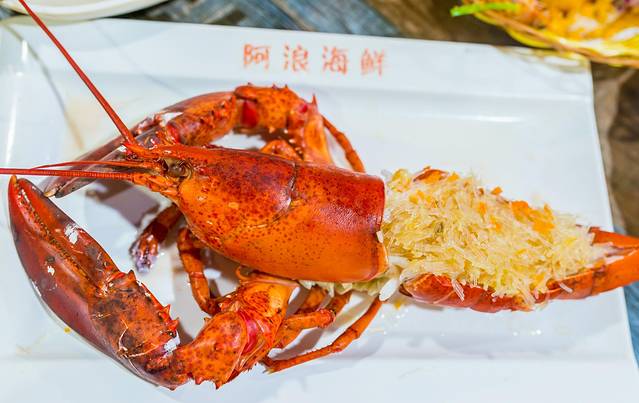 狠狠心来一只大龙虾吧,还是那句话,回去就吃不到啦,龙虾虽然有点小贵,不过真的很值。这么大一只龙虾摆在你的面前,满满的仪式感
