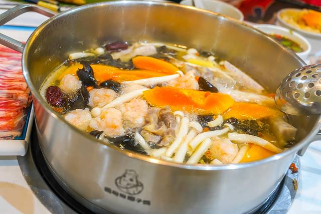 除了原味椰子鸡外,还有一种加入了木瓜和花胶的,这种新口味我真的太爱了,木瓜在椰汁中煮了以后,融入了鸡肉香,真的太太太太太好吃了,从来没有吃过这么甜的木瓜。