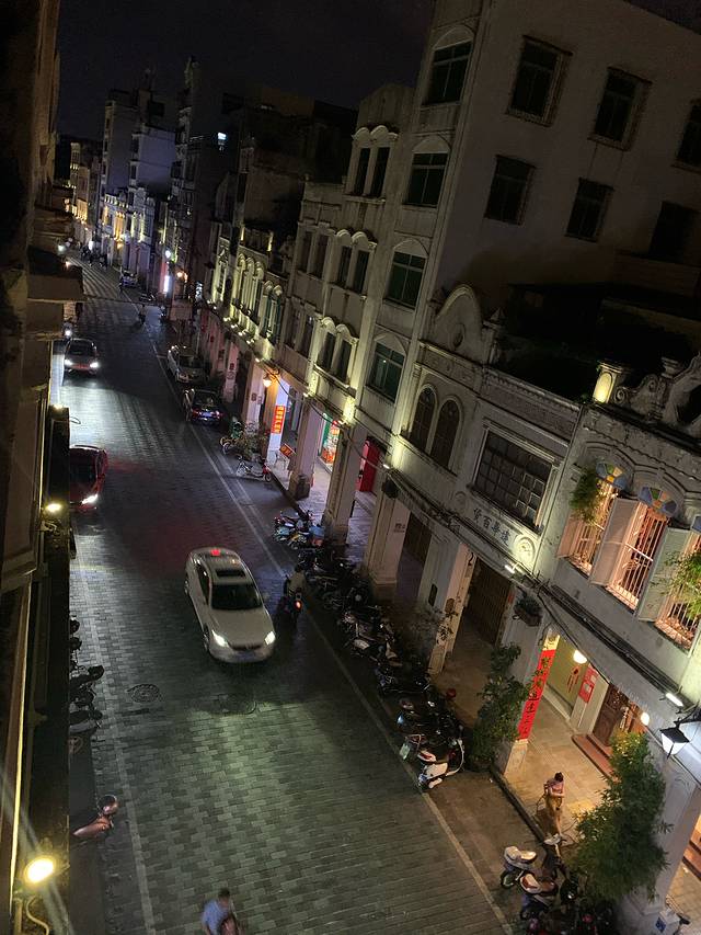Day2: 早起,在民宿后面的街道发现了一个有一条四通发达的道路的当地大农贸市场。里面都是当地人卖各种蔬菜、水果。还有非常新鲜的各种海鲜。看着就有一种想买点回家自己煮食物的冲动。在市场里逛了一下感受一下浓郁的生活气息。市场出来后找了一家餐厅吃了海南粉。当地的美食。海南粉还真是好吃😋。特别推荐到了海口一定好吃😋。白天在骑楼老街又逛了一下感受一下白天的骑楼。由于我和老公都是比较怕热的人。大概逛到10点多就回民宿休息了(当代年轻人的旅行😅)睡了午觉后。晚上凉爽了一些。去海口大学城附近的夜市。我们开车过去20分钟左右就到了。夜市特别热闹。有各种各样的美食。而且还物美价廉😋。吃了海南当地的甜品清补凉很解暑。考生蚝🦪、肠粉等各种小吃。满足了味蕾后。在夜市里逛了一个来回,消化一下哈哈😄。回到民宿没有睡意还可以在民宿露台上小酌一杯。看看楼下的百年骑楼老街的建筑夜景。海口第二天行程结束。
