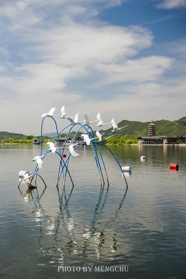 雁栖湖因为每年春秋两季常有成群的大雁来湖中栖息,故而得名。