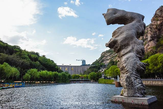 青龙峡大坝是整个景区的核心景观,这座高59米、长283米、宽4米的大坝是北京市第一座混凝土拱形坝,两侧的青山、壮观的大坝、蹦极跳台都集于一处,好似一幅巨大的背景画。