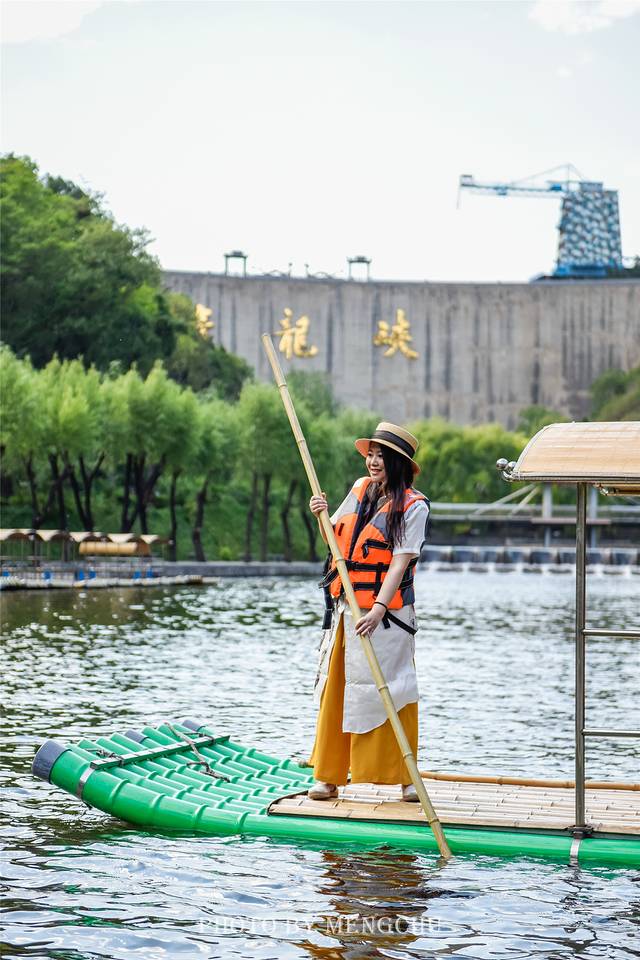 大坝东面光滑的石壁就是溢洪道,7-8月份雨量充足,水位达到一定程度就会出现溢洪瀑,飞瀑狂泻似一条白龙飞旋而下,气势磅礴,特别壮观。大坝下方是浅水区,水深约为1米,以竹筏、手划船为主。这片区域虽然看上去并不大,当撑上竹排或荡起小舟时,就能体会到广阔无限,心神豁达的乐趣了。