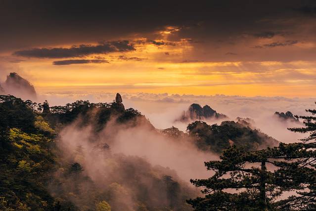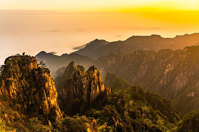 当眼前的一切都被金色的光芒笼罩,那时我才第一次真正感受到“梦幻黄山”这梦幻二字的魅力,才明白了为什么古往今来的文人墨客与书画大家都对它流连忘返,才明白了为什么徐霞客能道出“登黄山,天下无山”这般的极致赞美。因为黄山,它值得。