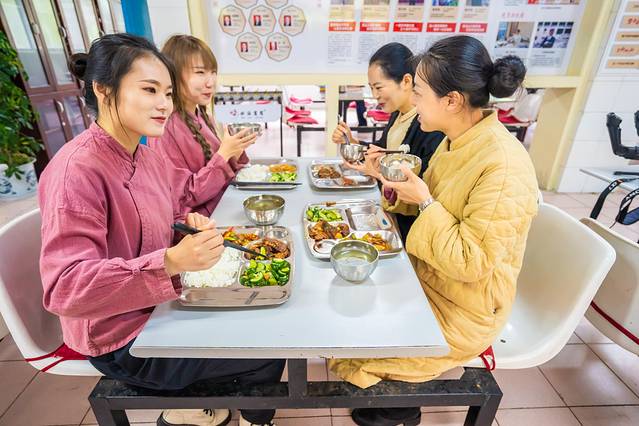为了百分百体会雲亼管家的生活,中午我们与山宿的大管家们一起在员工食堂吃饭,十分朴素的青菜肉还有蛋汤,简单却美味可口,大管家们与我们边吃边交流着生活与工作上的琐事,让我感觉仿佛真的是融入了这个环境中,成为了一名真正的黄山人。