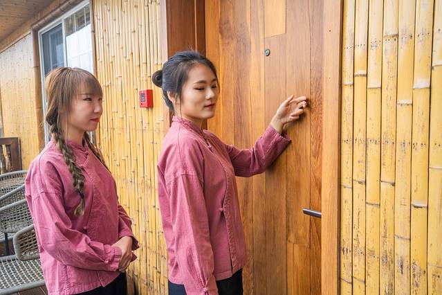 来到这里,首先要与雲亼的大管家交接基本工作内容和相关事宜,换上了管家专属的工作服,我的管家时光就正式开始啦!作为黄山北海的精品民宿,雲亼从建筑外观到客房设计都遵循竹木结构,古朴自然,全房地暖实木家具,保证了在山顶上也能舒适温暖。BOSE音响,还有为了缓解游客爬山疲惫的双腿,而贴心放置在屋内的腿部按摩仪,每一处看似不经意的一角都是雲亼别有用心的考量。