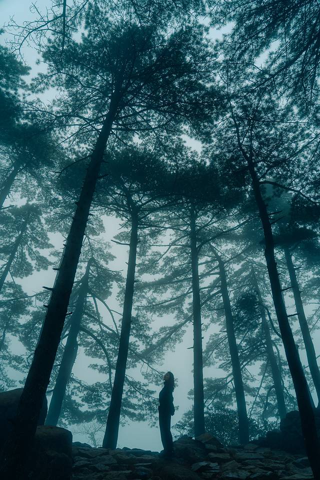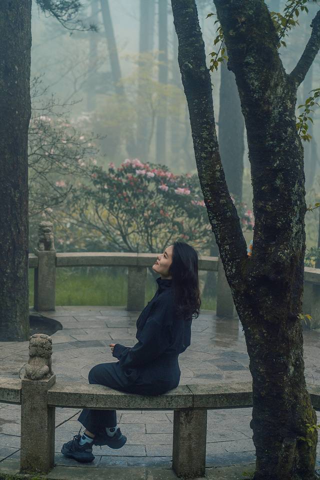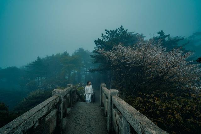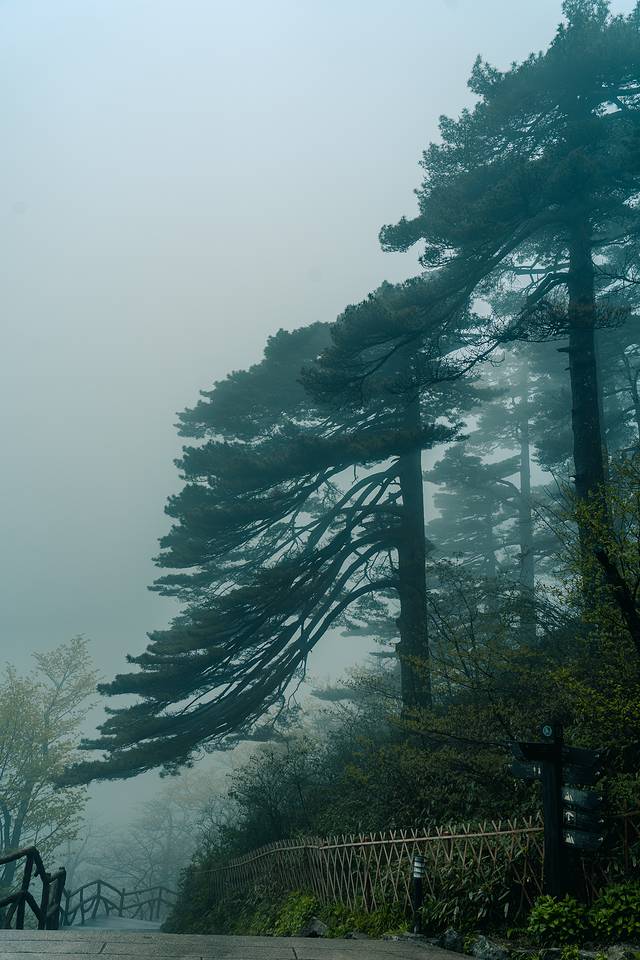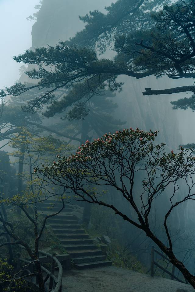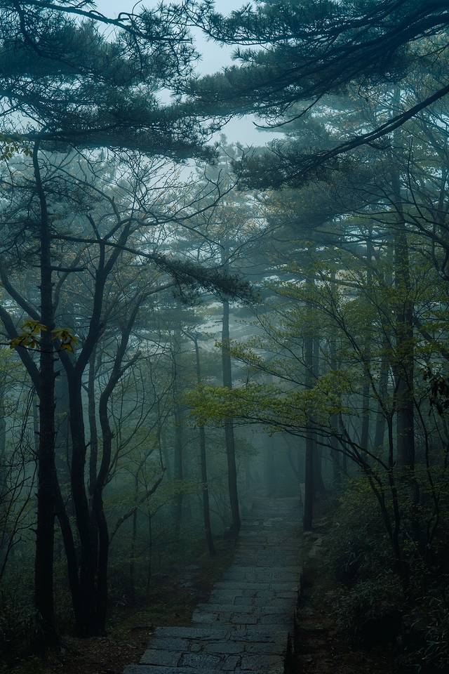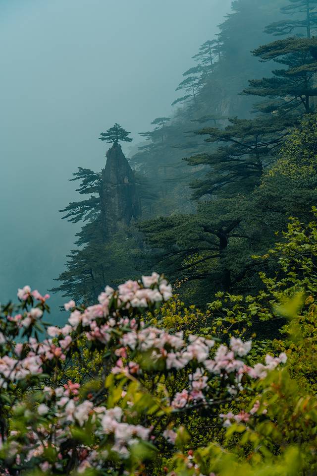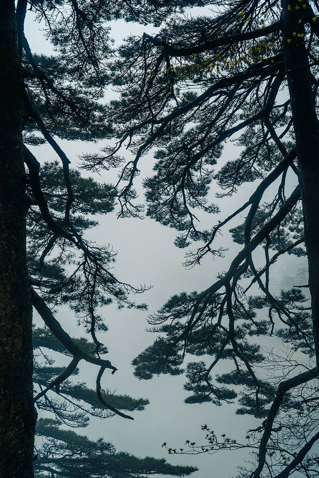 大千世界,一方黄山,娑婆迷离,万相归一。起了雾之后的黄山,伴着淅淅沥沥的山雨,又好似另一重幻境,明知自己身处于万壑松峰之间,不见一山,仿佛自己也与黄山融为一体。只听得见雨声,闻得见山中独有的气息,与若隐若现的鸟鸣。