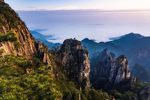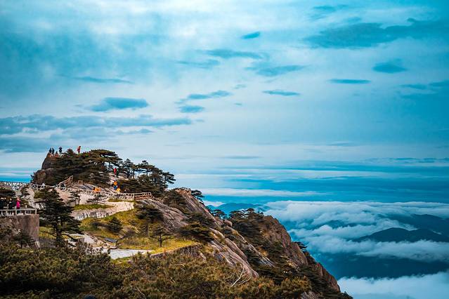 常常有人说,没看过日出的黄山之旅是不完整的,因为黄山的日出不只是太阳露出山头,更是那一抹金色的朝阳从梦幻云海尽头缓慢升起的壮阔。于是我们不到四点,便披上了大衣,踏着微微晨光,守候在猴子观海,静静地等待那抹曙光的到来。属于黄山的十二时辰便从这里开始。