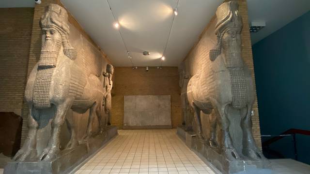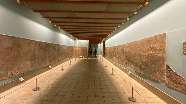Assrynia:Nimrud,埃及壁画,被切碎了一块块带回英国,装在博物馆墙上