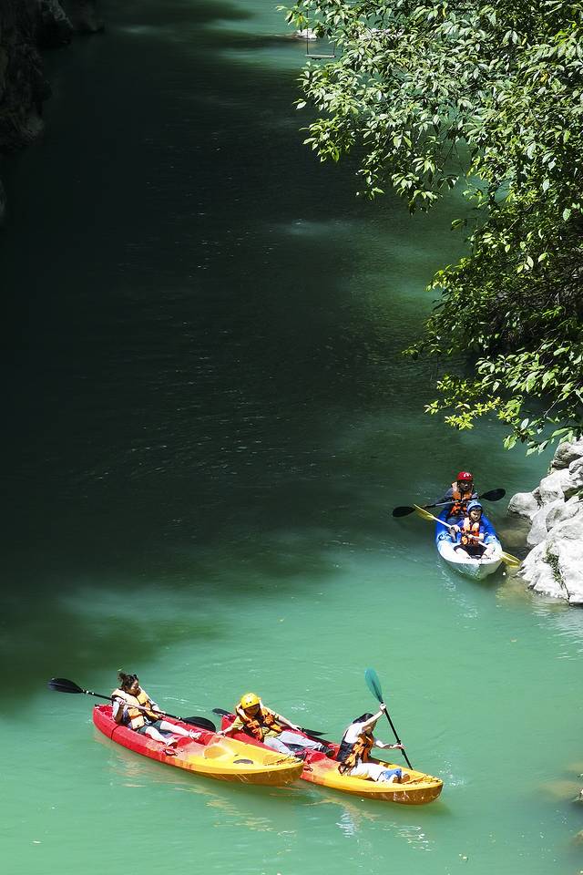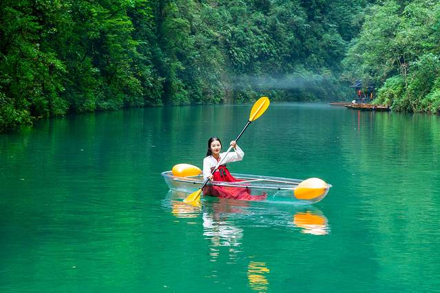 旺季的时候,屏山峡谷景区内还会有玻璃船和桨板等自费体验水上项目,不下雨的时候,很多游客都会选择玩玻璃船。
