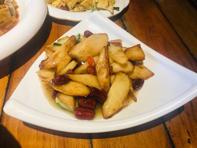 蜜汁长山药,以平遥特产长山药为主要原料,以不同形状不同口感展现给食客,是厨师的别出心裁。口味偏甜,是一种给人以幸福感的菜肴。