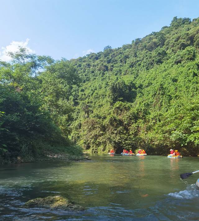 早七点二十出发,10分钟车程,七点四十分进入景区参赏流览拍照,乘坐竹筏近距离感受德天瀑布的美景,