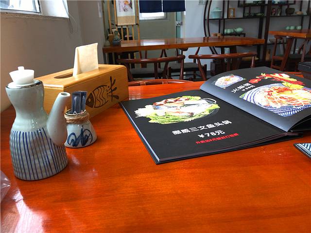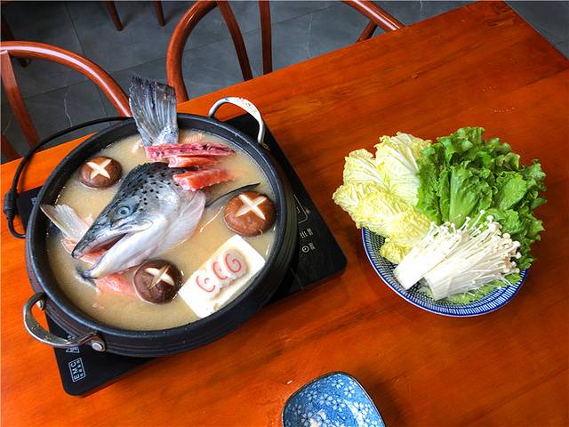 喜欢隐藏在那种小弄堂里面的小店。可以安静的吃个饭。特别找了个工作日。不是饭点的时候去的。好像快要下雨的样子。感觉很舒服。三文鱼刺身倒是吃过挺多次了呢。三文鱼头火锅貌似还说第一次吃。不得不说味道还说挺不错的。