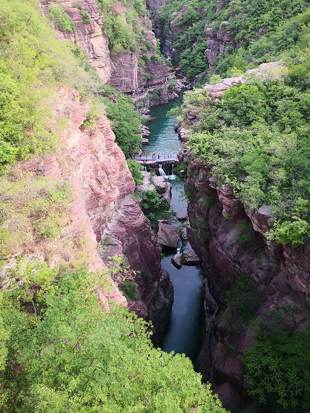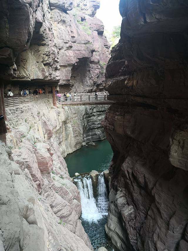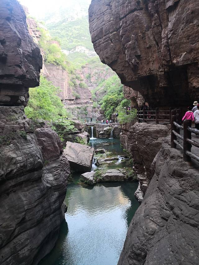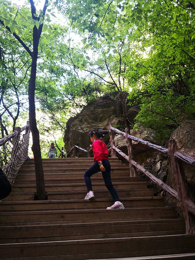 我们带着孩子,只逛了潭瀑峡。路平缓,台阶不太多。一路有泉水,很清,孩子玩水很开心。