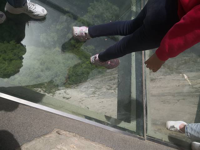 坐索道上(70/人上行,68/人下行,120/人往返),走玻璃栈道20/人。
