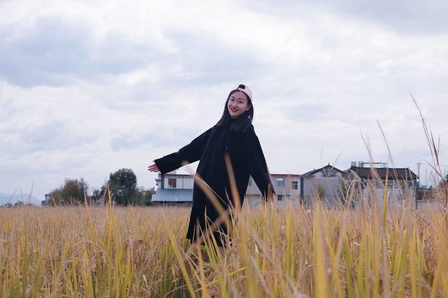 从才村往北一直骑,就到了喜洲古镇,穿过古镇看到了一片稻田,太喜欢当时的景色了,站在一望无际的稻田里,景色真的美到窒息,色彩分明,给你一种强烈的放飞自我的冲动。