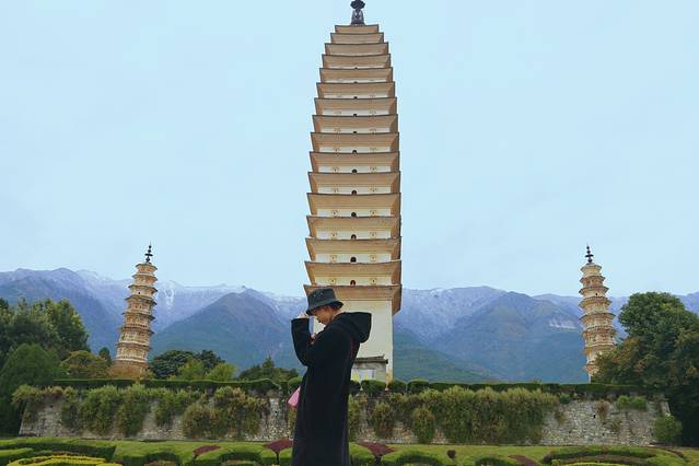 沿途远远就可以看到三座高高的塔,平时景区内的人也比较少,远远望去,三座白塔高高耸立,更显示出一种庄严神圣感。整个崇圣寺宏伟有气势,配以蓝天白云青山绿水,三塔之中宛如在仙境一般。
