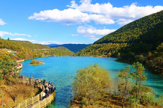 这里所到之处皆为僻静无喧嚣,湖水平静净心,草甸一望无际,森林茂密繁多,秋天的普达措色彩斑斓,层林尽染,这是人世间空明的境界之地。