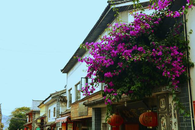青瓦屋面下种满了各种花花草草,正值含苞待放,整个街头巷尾被鲜花点缀着,从中经过,驻足欣赏,每个屋檐下都值得慢慢的回味。