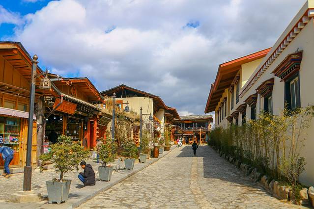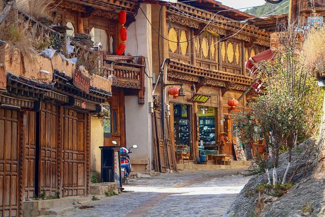 独克宗古城是中国保存得最好、最大的藏民居群,而且是茶马古道的枢纽,“独克宗”的藏语也为“白色石头城”的意思,很多人都愿意叫月光城。秋日的独克宗古城,古朴的街道,明净的石板,藏式的建筑,温暖的阳光,处处透露着古朴精致。