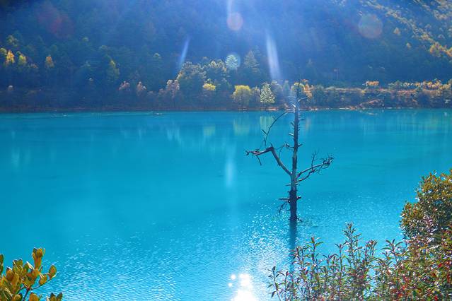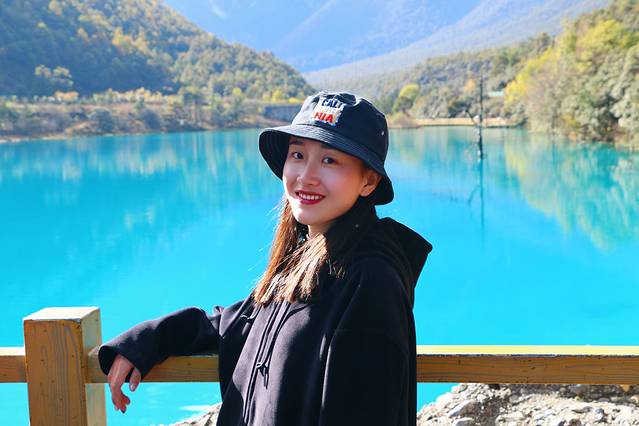 最震撼我的是波澜不惊的湖面,湖水很静,颜色幽蓝,感觉就像一面镜子,真是美到了极致,远处看,是很纯净很纯净的蓝,近处看,是很青翠青翠的绿,当风吹过,水面上荡起一阵阵波纹。蓝月谷是一个神奇的存在,它就像一个孩子,有时娴静,有时好动,有时善变,有时又神秘。