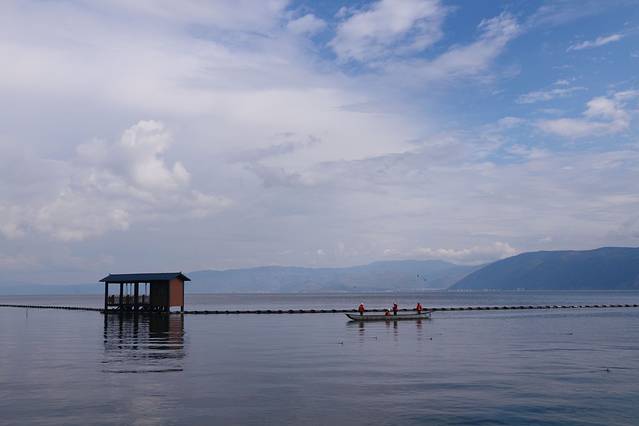 从大理古城往北走,一直骑到洱海边,然后就可以沿着洱海边一直骑行,第一站是洱海附近的才村,才村是个小渔村,家家户户都沿着洱海而建,世世代代与洱海为伴。