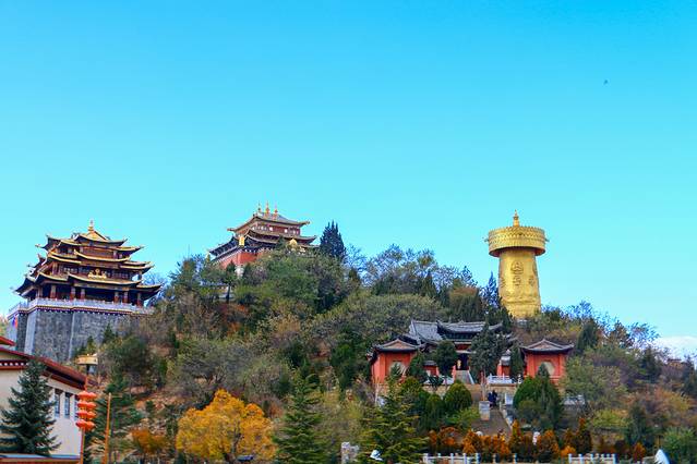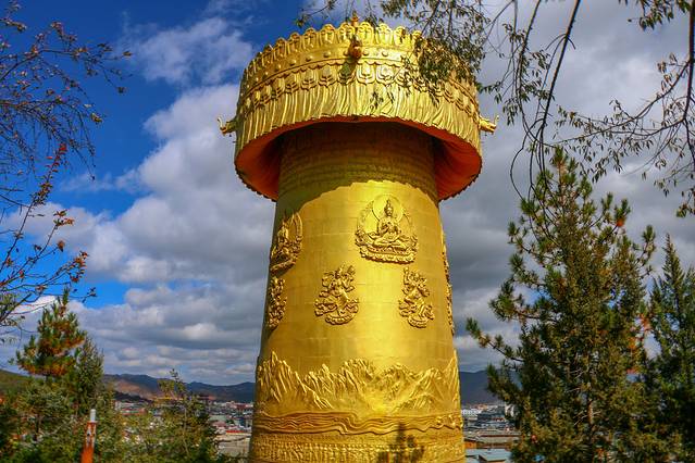 世界上最大的转经筒耸立在古城山上,巨大的、金黄的转经筒,让人心生笃定,仿佛翻越千山万水,为了就是那一刻的宁静。