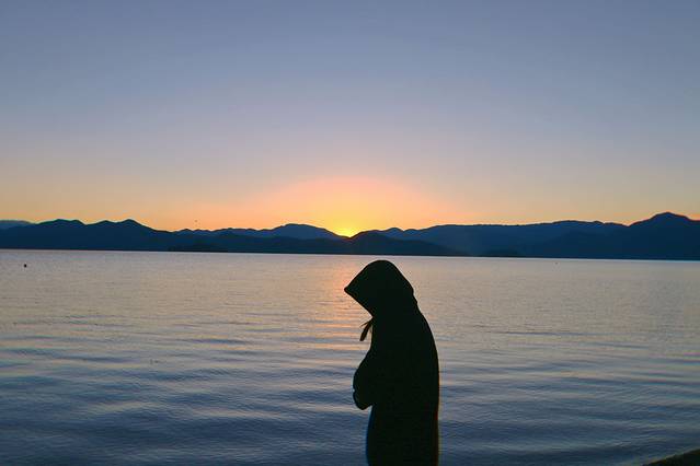 清晨的泸沽湖畔真的很冷,看着天边微光,心中便有坚持下去的希望,我知道当太阳出来的一瞬间,温暖必将洒满人间。