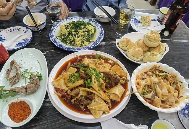 放下行李正是中午的时候,立马去市区吃了大餐!敦煌的羊肉很好吃,我一个吃不来羊肉的人也能接受!还有他们的特色杏皮水也很好喝!