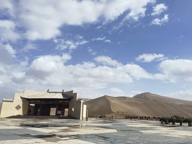 下午去了鸣沙山月牙泉,非常漂亮的地方!可惜我们去的当天下了暴雨和冰雹!天气不是很好😂所有没有看日落!月牙泉对面的沙山爬上去可以看到月牙泉的全景,等到日落的时候是最漂亮的!