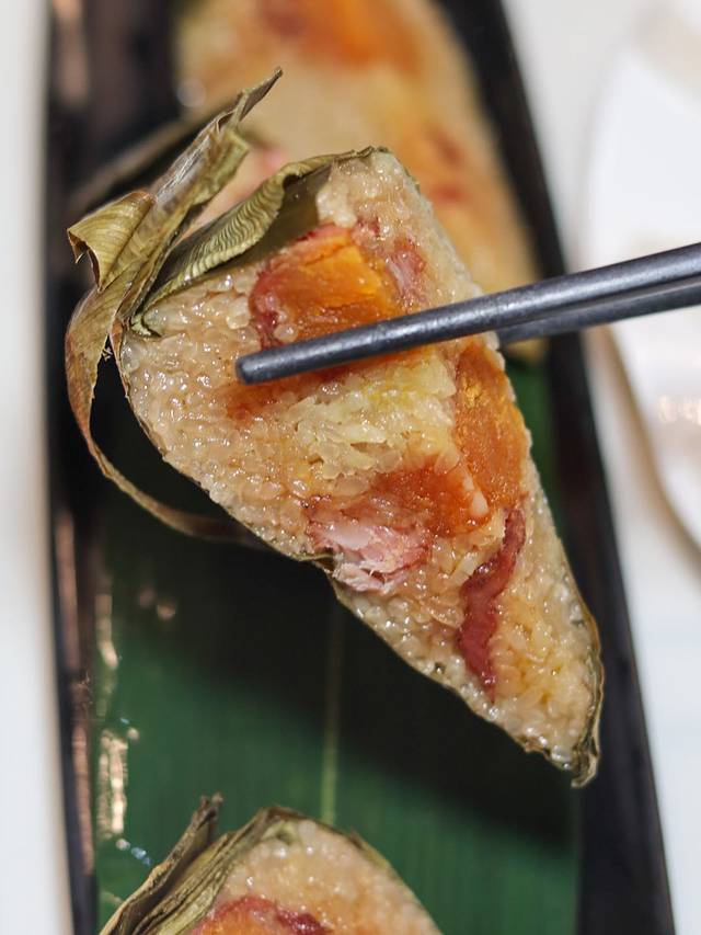 海南蛋黄黑猪肉粽是精选的黑猪肉,粽子里面里面都是双蛋黄,一定要趁热吃,我一个人就能吃一份!