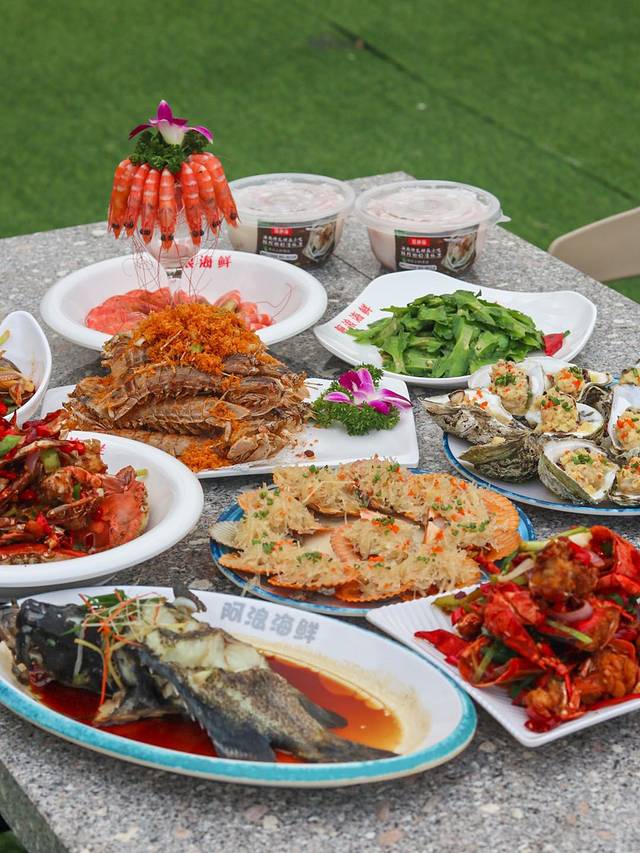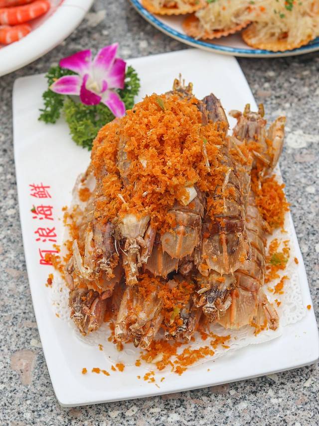 逛完免税店我们就在附近找好吃的,想到来三亚居然还没有吃海鲜!我们就选择了一家口碑很棒的老字号海鲜餐厅~阿浪海鲜连锁餐厅!作为三亚多年老字号,阿浪海鲜的人气真的太旺了~我们来的时候比较早,已经坐满了几桌,稍微晚一点又要开启排队模式了!店里可以自己挑选鲜活的海鲜,不用担心缺斤少两,价格透明~加工口味也可以自己选择。