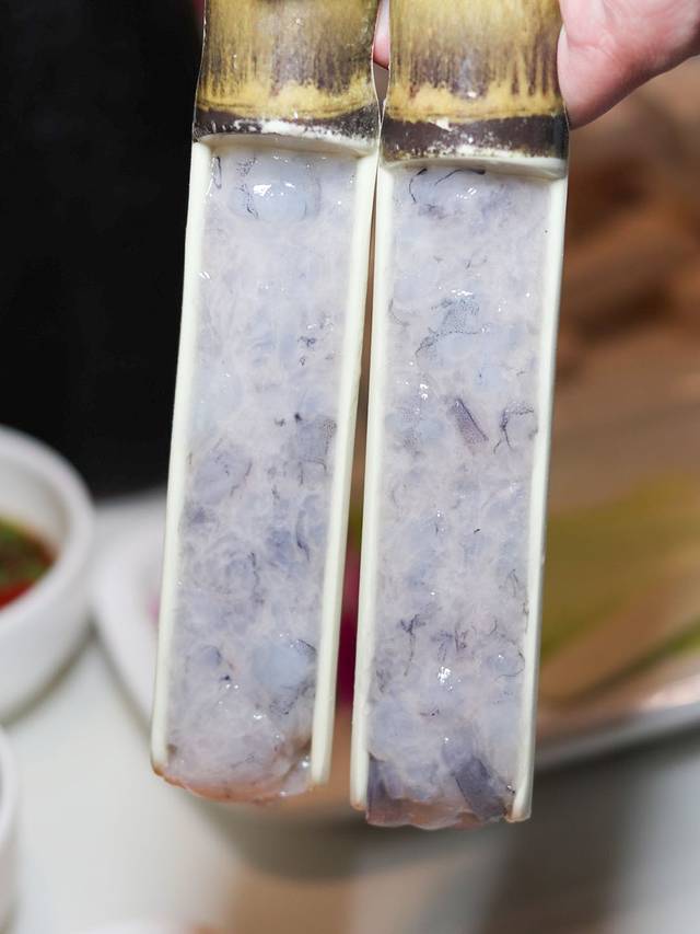 手打虾滑可以看到满满当当的虾肉,Q弹嫩滑,好吃到爆炸~