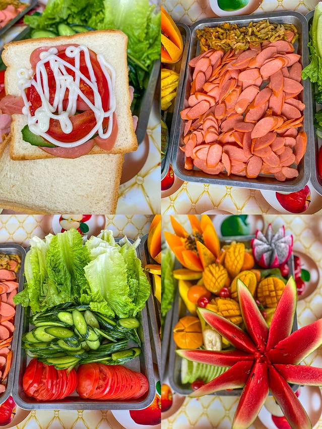 餐是新鲜的水果蔬菜三明治,营养均衡绝对能吃饱~