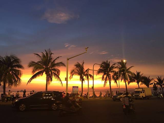 第三天我们又回到了三亚湾市区,落日的时候去看了椰梦长廊,这里随便拍!不需要门票,完全免费哦!海边长廊+绝美日落+十六个道具场景,真的张张出大片!拍照的女孩子随便穿,无论是长裙还是短裙都特别出片!这里的路边还会有一些摄影师,他们会强行给你推荐他们的拍摄套餐。不用理会他们,实在是拍的不怎么样,而且很贵!!!(本人的血泪教训~)