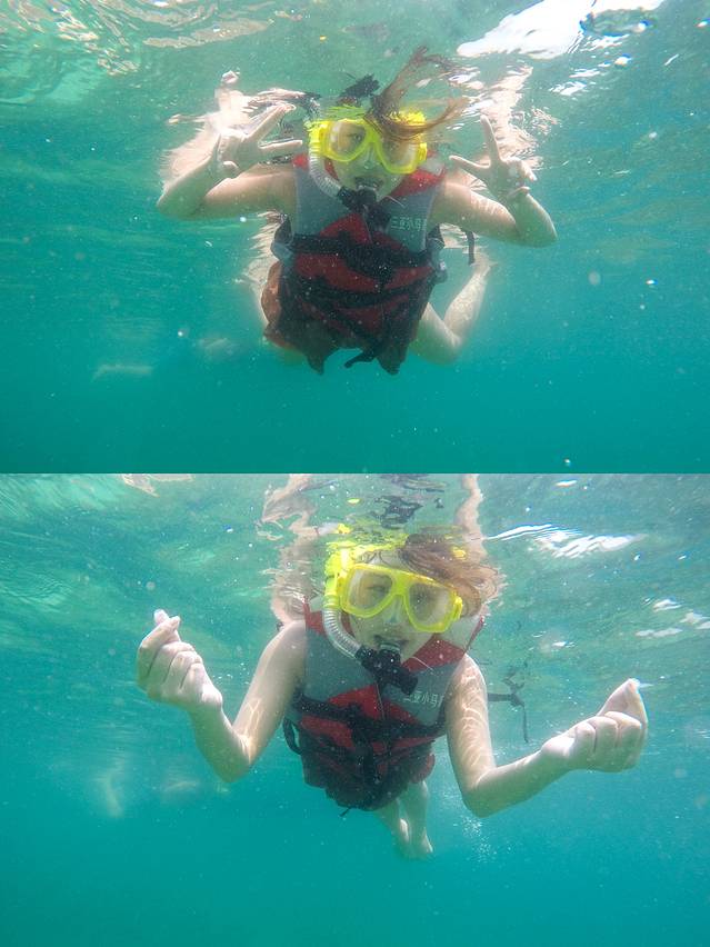 浮潜 ,我不会游泳所以一直有点害怕,但是教练很耐心~最后还是顺利的下水拍照了