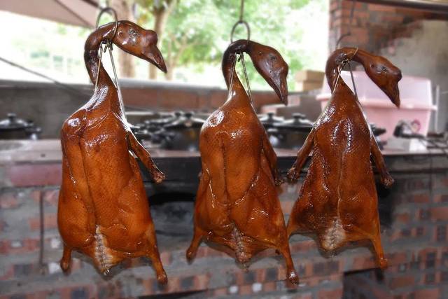 食烧鹅给人们最深印像是鹅皮金黄色,皮脆、肉鲜嫩,鹅皮下有一层不厚不薄的金黄脂肪,那可是烧鹅风味的泉源,识吃之人专挑那皮厚脂满的鹅块下手。