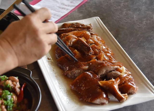厚实的鹅肉包裹着一层浓郁的酱汁,扑鼻的香味让人不禁流口水。鹅肉烹饪得皮脆肉嫩,每一口吃到的都是满足的味道。