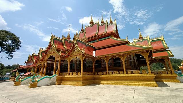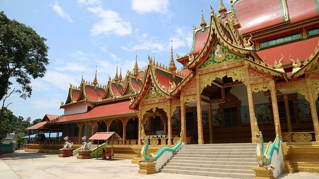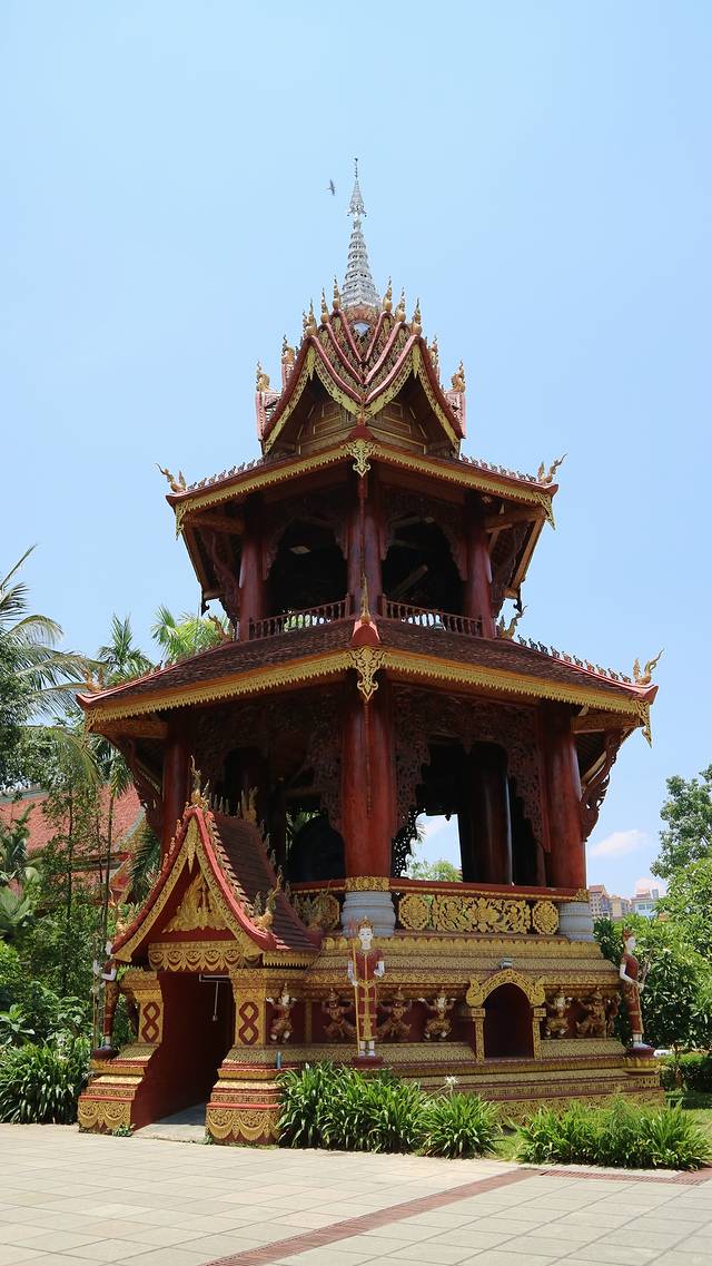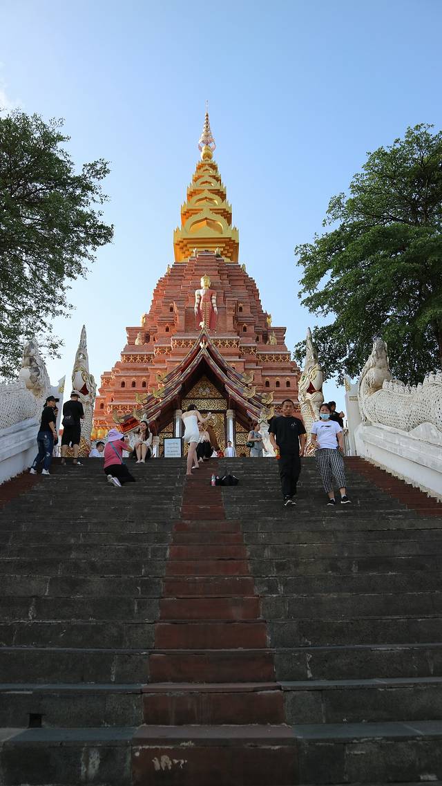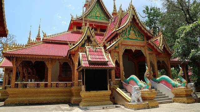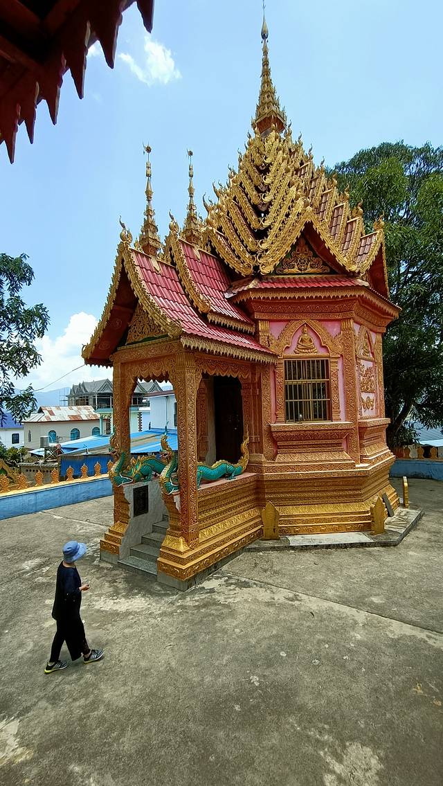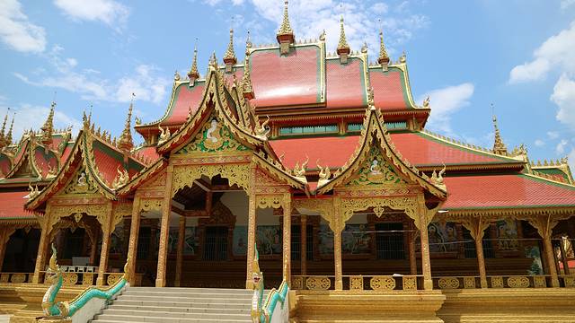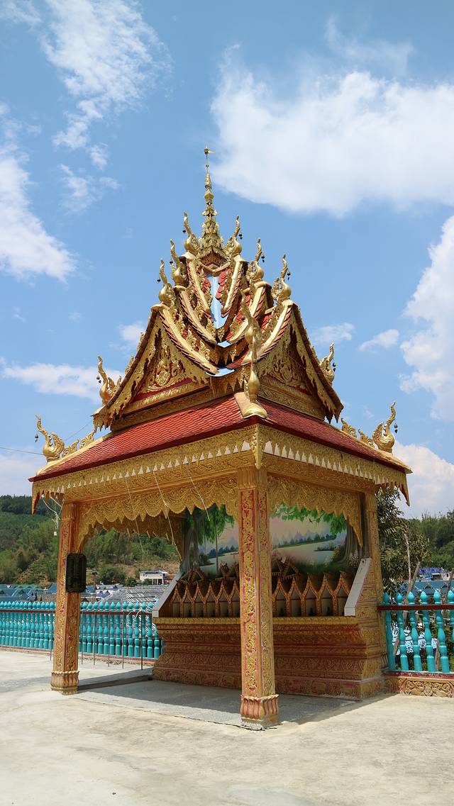 曼广龙的这一座非常雄伟壮观,朱红色的屋顶分外显眼,配上金色装饰,凸显尊贵。