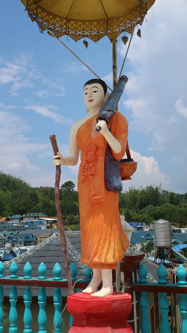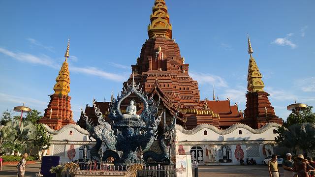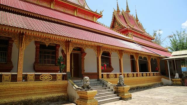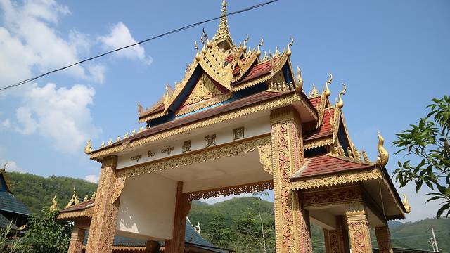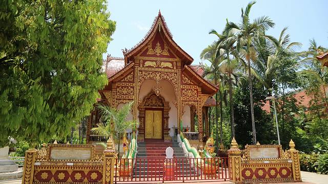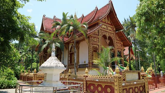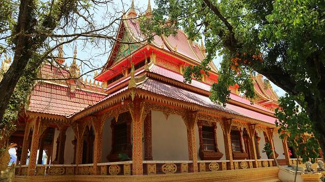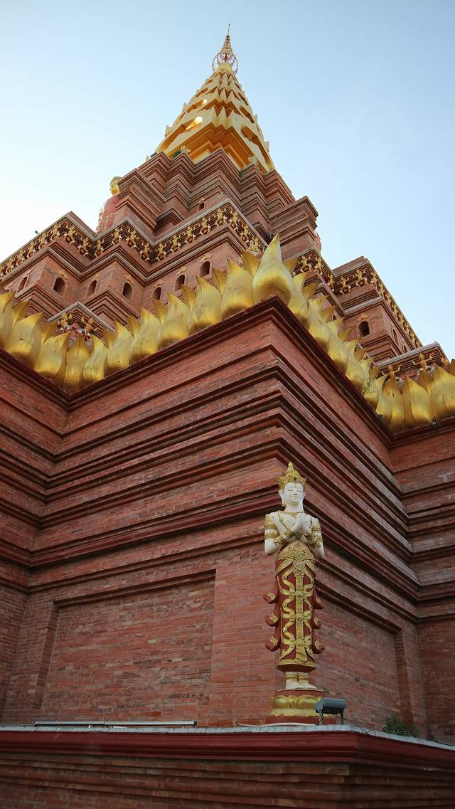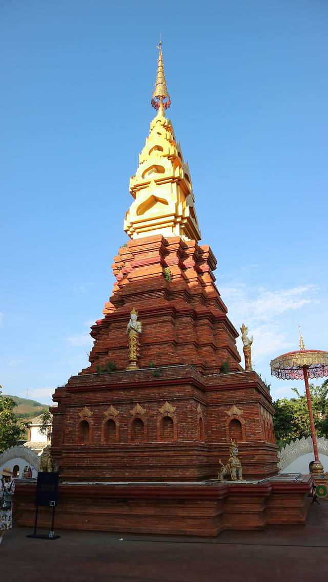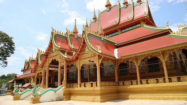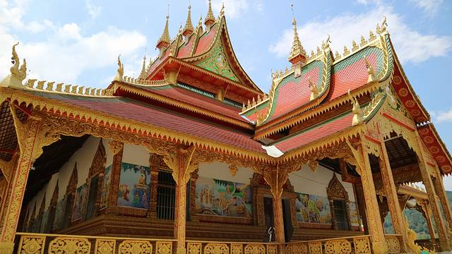 曼广龙的这一座非常雄伟壮观,朱红色的屋顶分外显眼,配上金色装饰,凸显尊贵。